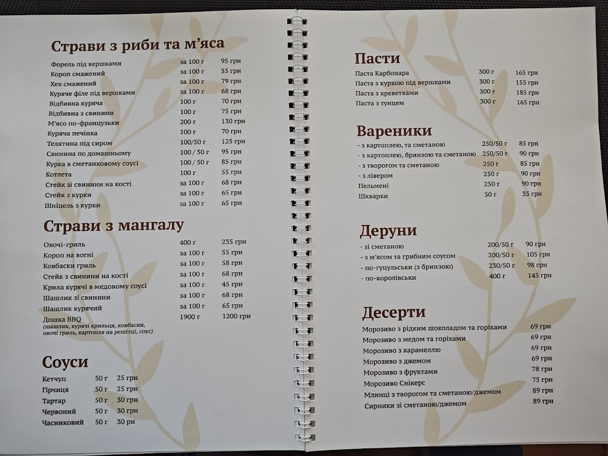 In addition to the delectable meals, the café offers a charming selection of non-alcoholic beverages, including refreshing juice and Pepsi options, perfect for pairing with your meal. While some guests, like Ulyana Priss, wish for more dessert options, they still leave with fond memories of their savory pleasures, such as лапша з бульйончиком (noodles with broth) and деруни (potato pancakes).